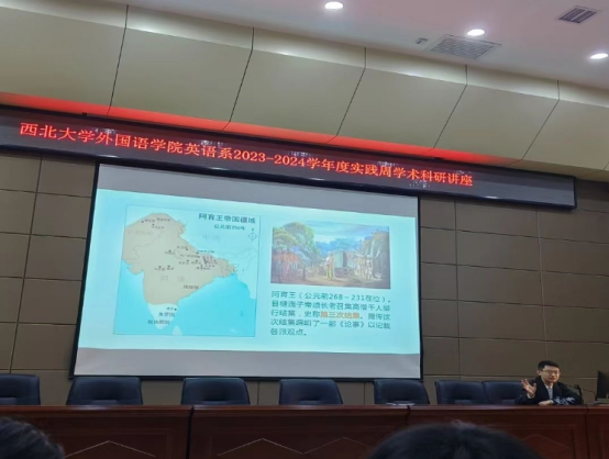 Furthermore, to break down disciplinary barriers and reinforce the new humanities development concept of integrating interdisciplinary knowledge, the school invited two distinguished guests to present a unique academic feast for students and faculty. One was Associate Professor Xie Zhibin from the Institute of Middle Eastern Studies. Focusing on the theme of “Translation, Acceptance and Dissemination of Ancient Chinese Buddhist Scriptures”, Professor Xie use abundant explanations and extensive historical evidence to reveal the contemporary significance of translating Chinese Buddhist scriptures to the students. The other guest was Mr. Wang Xiaochen, General Manager of Xi'an Tibo Crop Science Co., Ltd. Through sharing his entrepreneurial journey, Mr. Wang encouraged students to continuously improve their cross-cultural communication abilities and bravely pursue their career dreams in a diverse social environment. His career planning advice resonated strongly among the students.