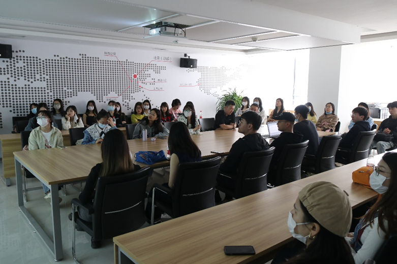 Zhang Xincheng, Deputy General Manager of Global Tone Communication Technology Co., Ltd, and Chen Dong, LS Business Unit Deputy Director, warmly welcomed the internship team from the school. The company’s relevant leaders briefly introduced the development history, current status, and future prospects of translation industry, as well as the main categories of translation services and job demands. They also provided an overview of the company’s situation, and answered questions regarding students’ job-seeking needs and the company’s business content. At the company’s exhibition hall, the staff demonstrated the latest research achievements in fields including speech recognition, image recognition, semantic search, knowledge graph, big data analysis, and big data visualization within the “Yijian · Platform of Big Data Visualization Analysis”.