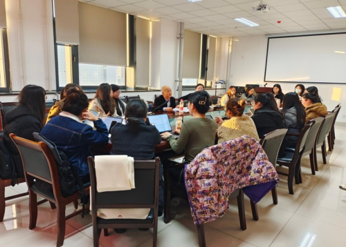The linguistics group, led by Associate Professors Li Mi and Zhang Liyin, focused on the theme of research methods in linguistics and teaching methods. They discussed topics such as research methods in linguistics, current trends and prospects in academic English research both domestically and internationally, pragmatic identity construction, and English curriculum design and teaching methods.