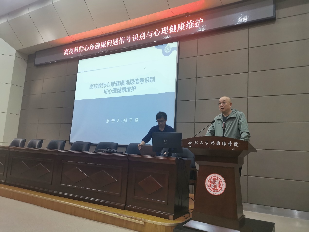 Before the lecture, Wang Jun, the Party Secretary of our school, introduced the speaker and shared the purpose of the event, and emphasized the importance of mental health for every faculty member.