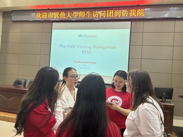 Subsequently, representatives from both universities gathered at the Lecture Hall 2 of the School of Foreign Languages for a relaxing and enjoyable free exchange. The discussions covered topics from campus life and pop culture to Xi’an cuisine and international films. Through their interactions, the youth from both sides deepened their understanding and appreciation of each other’s cultures. Students from Southern Utah University showcased the natural beauty of Utah, while students from Northwest University passionately recommended the distinctive food of Xi’an. The atmosphere was lively, with continuous laughter throughout the event.