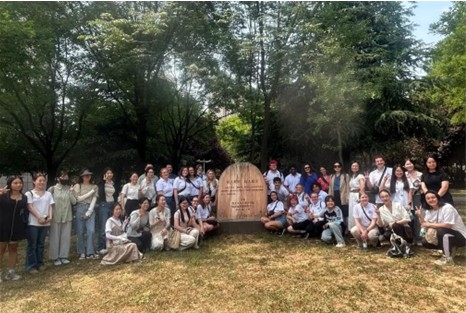 The teachers and students of the study tour group from Southern Utah University first visited the Sino-American Friendship Monument. Led by Ms. Gao Minna, they learned about the historical story behind the monument and experienced the profound significance of Sino-American friendship. They also visited the statues of Confucius and Aristotle, gaining insight into the essence of Eastern and Western cultural educators. The group then moved to the Snow Reading Room in the West Learning Building, where they explored precious historical images and documents to deepen their understanding of the contributions made by international friends such as Helen Snow and Edgar Snow to Sino-American cultural exchange.