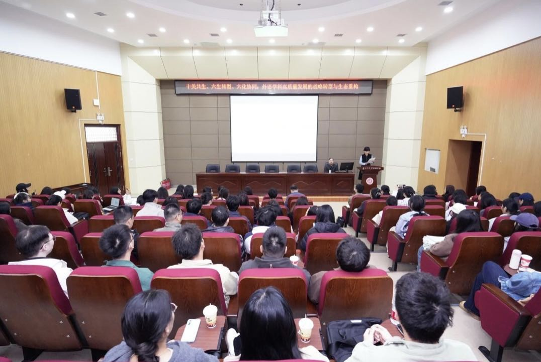 On the morning of November 2, 2025, Professor Mao Haoran, Dean of the School of Foreign Languages at China University of Petroleum (East China), was invited to speak at the Northwest University Distinguished Lecture. He delivered a thematic lecture titled “Ten Synergies, Six Transformations, and Six Coordinations: Strategic Transformation and Ecological Restructuring for High-Quality Development in Foreign Language Disciplines.” The lecture was presided over by Professor Cao Ruonan, Dean of the School of Foreign Languages at Northwest University, and attended by hundreds of faculty members and students.