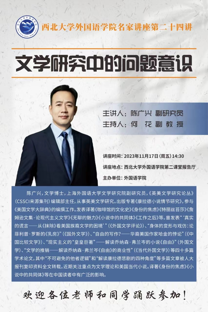 Venue: Lecture Hall 2, School of Foreign Languages, Northwest University