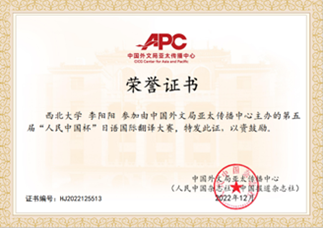 在近日结束的 “第五届人民中国杯日语国际翻译大赛” 中,我校参赛选手在我院竞赛团队指导下喜获佳绩。
