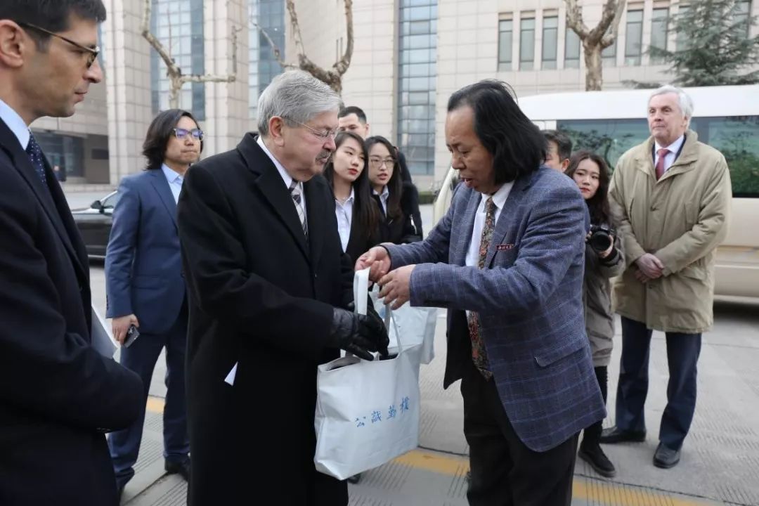 郭立宏校长和大使泰里•布兰斯塔德阁下分别致辞,王亚杰书记和郭立宏校长向大使及夫人一行赠送了“蓝田玉”纪念品。王亚杰书记说:希望我们的友谊像这玉石一样长久。