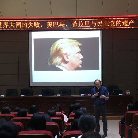 罗素·邓肯教授于1988在美国佐治亚大学获得历史博士学位。曾任美国佐治亚大学副教授和挪威理工大学教授。从2004年起,任哥本哈根大学教授。主要从事美国当代文化和跨文化研究,近几年一直关注中美关系方面的研究。出版有《当代美国》、《1865年以来的美国历史》等十几本著作。专著《龙与鹰:中国与美国政治》于2015年由陕西师范大学出版社在中国出版。在此次报告中,罗素·邓肯教授从2016年美国希拉里和特朗普大选讲起,谈及了美国大众的选择以及特朗普当选的原因。从而延伸至民主党和共和党不同的执政策略以及两党对于自由的追求,最后谈及了希拉里的女性身份等问题。