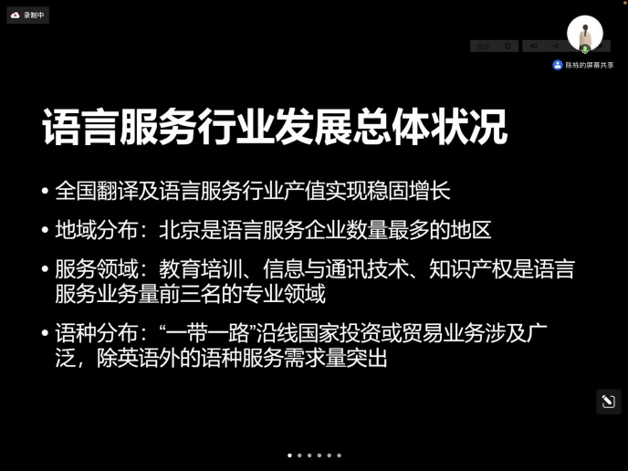 6月1日下午,应我院MTI中心邀请,中译语通科技(陕西)有限公司语言服务事业群副总监陈栋为我院师生带来精彩的线上讲座。会议由陈汉良副教授主持,我院部分专业教师与2021级全体专业硕士研究生共同参与了此次会议。