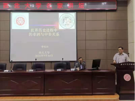 5月14日下午,应我校邀请,多伦多大学哲学博士,北京大学教授,中国非洲史研究会会长李安山教授做客我校“名家讲坛”, 为我校师生做题为“世界历史进程中的非洲与中非关系”的主题讲座。我院部分专业教师及2020级全体专业硕士研究生聆听了讲座,讲座由西北大学中东研究所前所长、教授、博士生导师黄民兴教授主持。