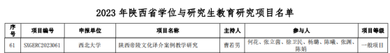 我院1个项目入选为2023年陕西省学位与研究生教育研究项目