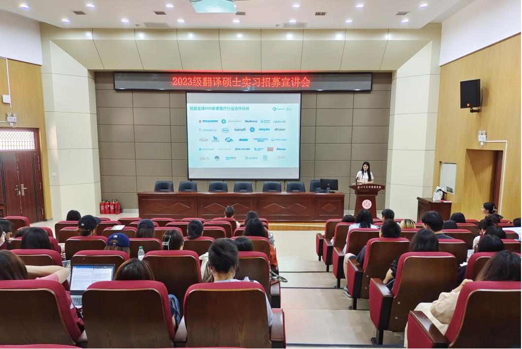为深化校企协同育人机制,助力我院翻译硕士高质量就业,6月5日下午14:00,应学院邀请,西安雅信诚医学科技信息有限公司、中译语通科技(陕西)有限公司来校实习宣讲。我院2023级全体翻译硕士研究生参会,宣讲会由MTI中心实践工作负责人陈汉良副教授主持。