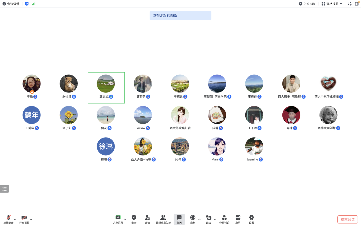 2023年10月23日晚上7点,通过腾讯会议线上平台,我院成功举办了2024年国家社科基金项目区域国别方向选题论证会。本次论证会以区域国别研究为方向,由学校社科处统筹,邀请了五位世界史领域的知名专家——黄民兴教授、王新刚教授、韩志斌教授、李福泉教授和闫伟教授——进行项目选题指导。我院10余位专业教师和校内其他单位诸位教师参加了本次论证会。会上,五位专家从项目选题、结构、内容、意义等方面对申报教师所提交的论证书进行了细致、深刻的全面评估,并提出了建设性的完善建议。在四个小时的论证会中,专家们深厚的学识和耐心的指导让所有与会教师深感敬佩和感激。此次论证会对于申报教师进一步完善选题和开展研究具有非常重要的指导意义,对其他与会教师开拓区域国别方向的选题和科研思路也具有很大的启示和帮助。