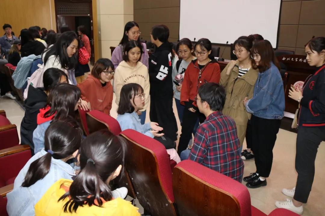 4月1日晚上,学院首先进行了保研经验分享会,邀请英语专业保研至浙江大学的戴颖、日语专业保研至上海外国语大学的徐雨晨、英语专业保研至香港中文大学的冯子潇、英语专业保研至浙江大学的枣彬吉、英语专业保研至武汉大学的王柔嘉五位优秀的学生进行分享。五位学生从推免政策、学校选择、夏令营选择、面试注意事项、学硕专硕选择等方面进行了经验分享,在分享会后通过自由交流的方式进行了深入交流。