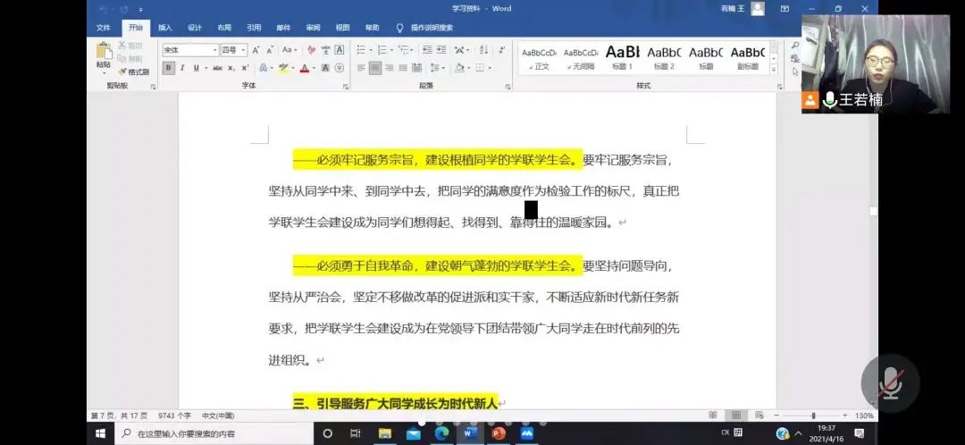 最后,全体成员一同浏览学习了《关于推动高校学生会(研究生会)深化改革的若干意见》、《关于落实共青团和学联对高校学生会(研究生会)指导管理责任的若干规定(试行)》等文件,通过学习,学生会成员对学生会运行管理过程中的规章制度更加明晰,结合学院具体实际,带着问题学习《方案》,对强化学生会职责、优化学生会组织体系、创新工作机制等具体问题有了更加深入的思考。