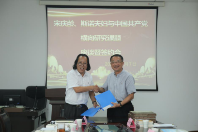2020年9月7日下午,上海宋庆龄研究会与陕西省斯诺研究中心横向课题座谈与签约仪式在我院会议室举行。为建党100周年,上海宋庆龄研究会委托陕西省斯诺研究中心就 “宋庆龄、斯诺和中国共产党”课题进行史料挖掘与研究。签约仪式由我院院长胡宗锋教授主持。