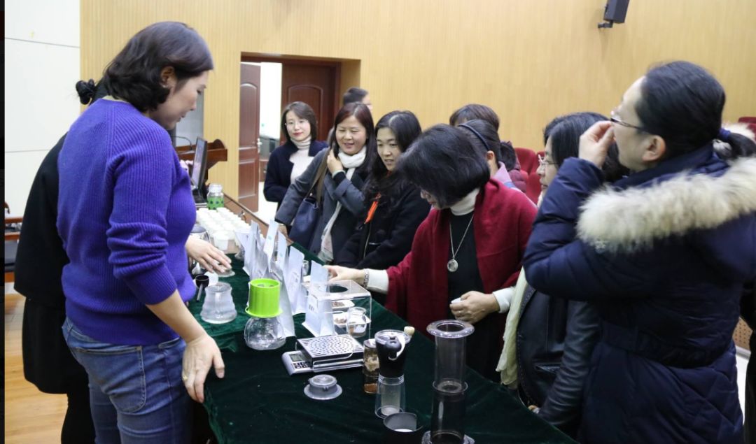 为了便于各位老师更深入地了解咖啡的相关知识,培训老师准备了详实的PPT,对咖啡的历史、文化、分类进行了讲解。理论知识分享之后,培训老师现场制作咖啡,并邀请各位老师试饮不同种类的咖啡,交流其中的异同。