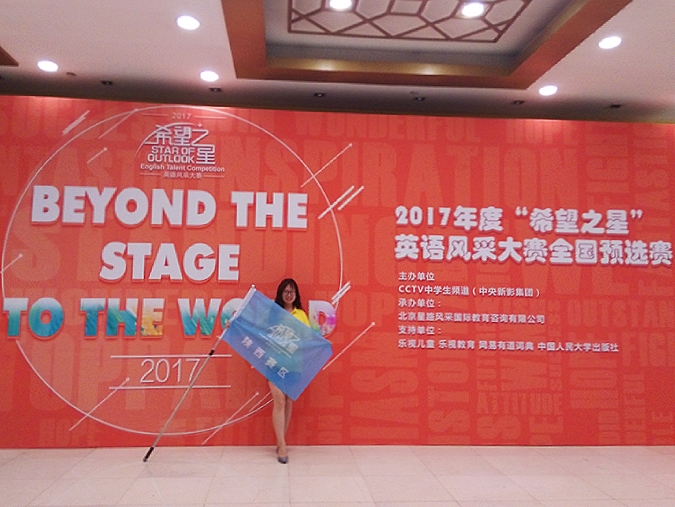 “希望之星”英语风采大赛是由中央电视台主办的大型英语电视比赛,自2000年开办起至今已举办17届,被视为国内同类比赛中档次和规模最高的英语竞技类赛事。7月16日,全国32个赛区700万选手层层选拔出的2000多名优秀选手齐聚北京,作为2017年CCTV“希望之星”英语风采大赛陕西赛区的代表之一,上官书仪同学前往北京参加全国总决赛。本次比赛分为以下四个环节:个性演讲展示;即兴故事演讲;辩论型角色扮演和现场即兴问答。上官书仪同学在总决赛中表现优异,彰显西大学子的风采。