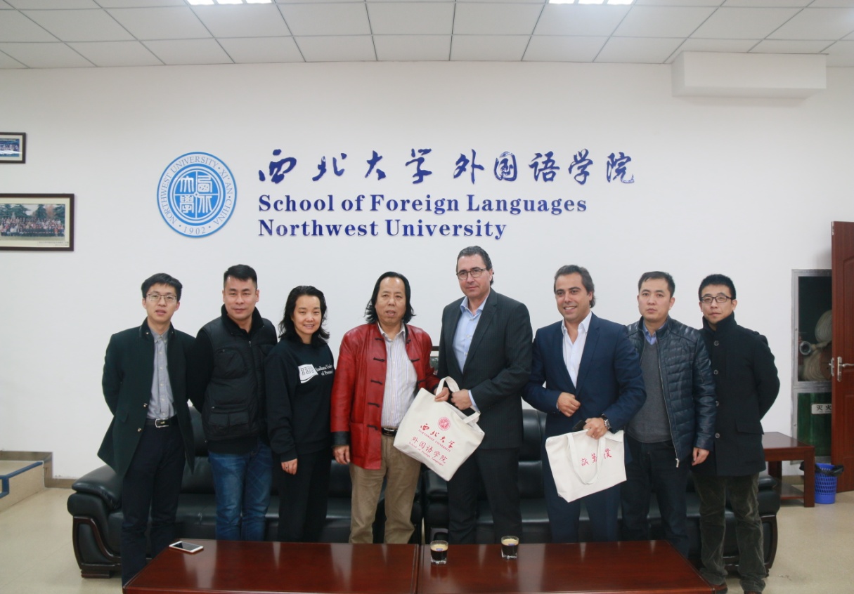 3月30日上午,葡萄牙跨国集团 - Iberiapremium集团总裁Júlio Torcato Faria先生携执行总监Ricardo Araújo先生访问外国语学院,院长胡宗锋教授在学院第二课堂报告厅与相关外宾就合作事宜进行商讨。
