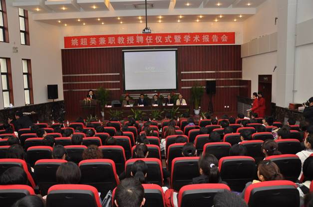 聘任仪式后,姚超英副秘书长用流利的英语为外国语学院师生作了主题为“商务礼仪”的学术报告。