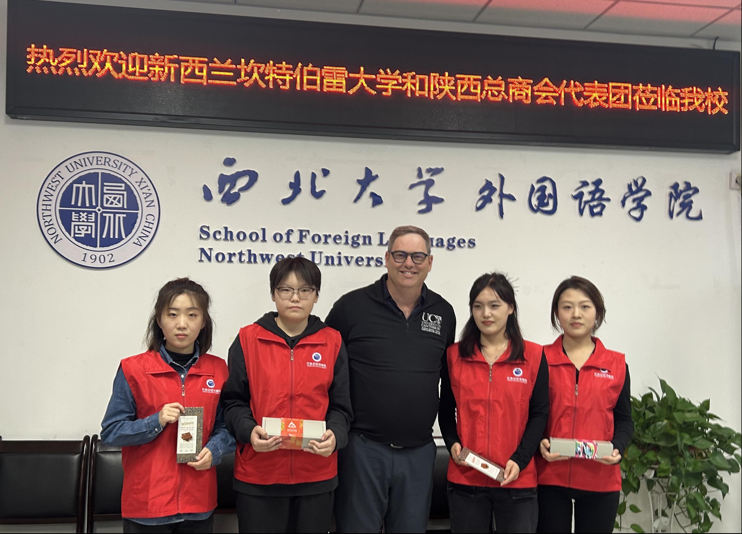 2023年11月21日下午,新西兰坎特伯雷大学国际学院院长Ian McDonald、陕西新西兰总商会会长赵芳一行到访我院,在西学楼五层会议室举行了会晤,就教育合作、国际友人研究等议题进行了深入交流。本次活动由陕西省人民对外友好协会牵线、西北大学国际合作部协调,省友协美大部一级巡视员宋明、西北大学国际合作部部长任蕙莲以及我院院长曹若男出席了会议。