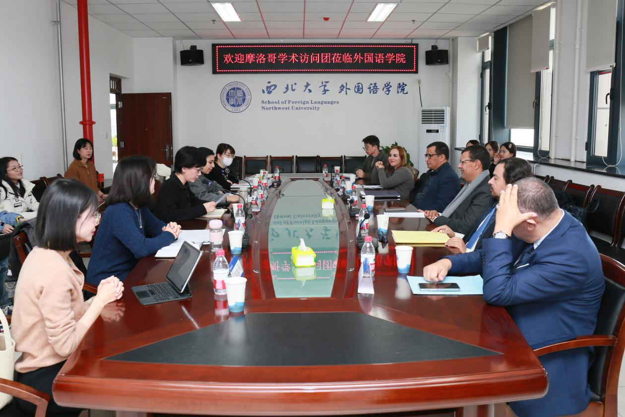 2023年12月4日下午,摩洛哥学术代表团莅临我院就区域国别研究相关议题展开座谈。代表团一行五人,由摩洛哥穆罕默德五世大学主管科学研究副校长奥马尔•哈尼什带队,成员包括穆罕默德五世大学法律、经济与社会学院萨莱校区副院长穆斯塔法•马什拉菲,穆罕默德五世大学法律、经济与社会学院萨莱校区法律系前主任德里斯•塞非阿尼,穆罕默德五世大学非洲研究所教授萨马尔•哈姆利什和阿卜杜勒-马立克•阿萨迪大学法律、经济与社会学院教授拉希德•侯代圭。座谈会由曹若男院长主持,我院北非研究团队全体教师和国别与区域方向研究生参加了座谈。