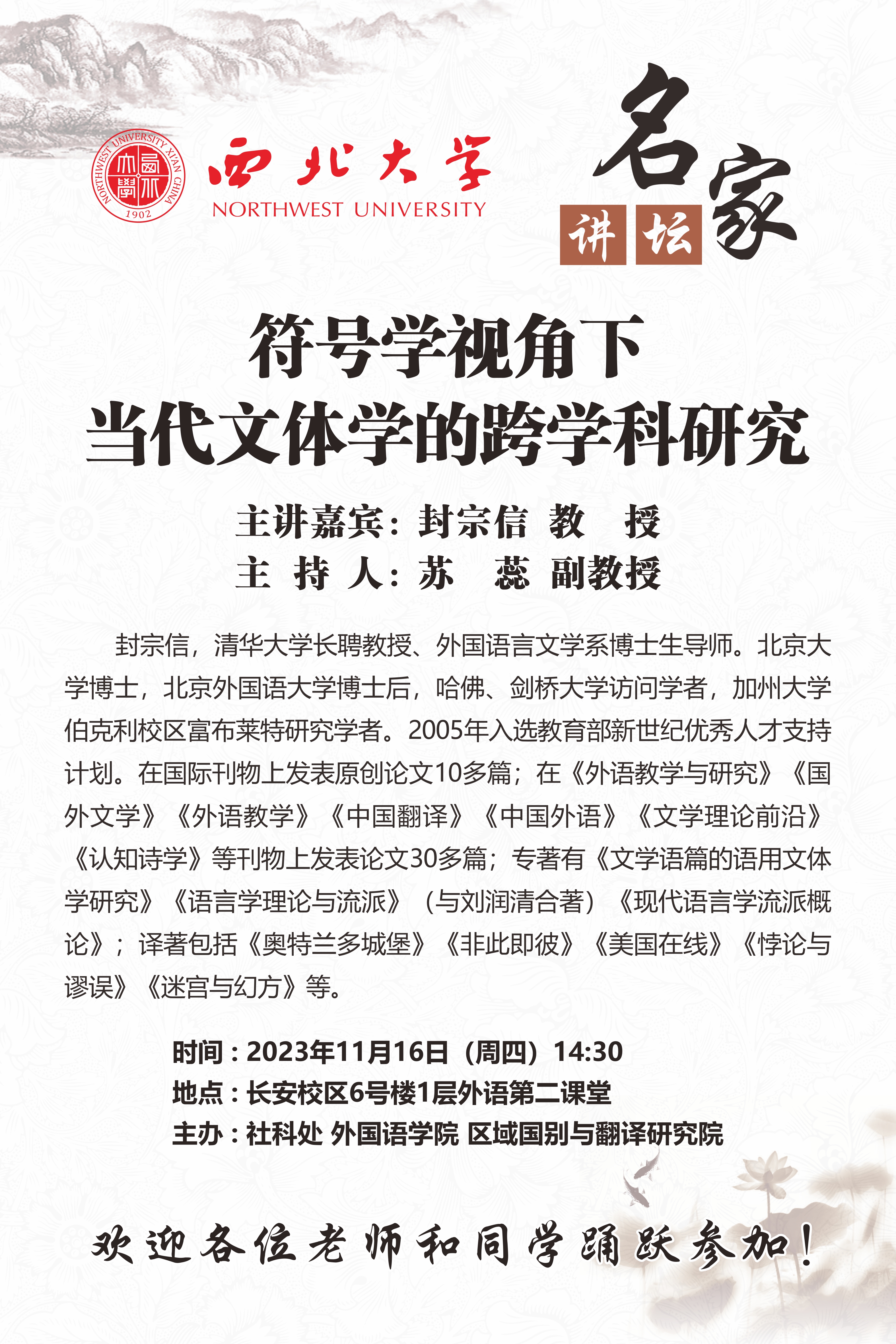 必赢亚州242名家讲座系列之二十三——符号学视角下当代文体学的跨学科研究